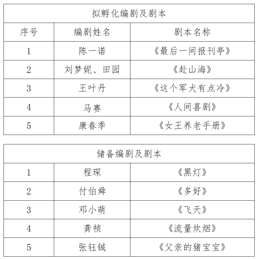 中国国家话剧院“青年编剧创作扶持计划第一季”入围公示