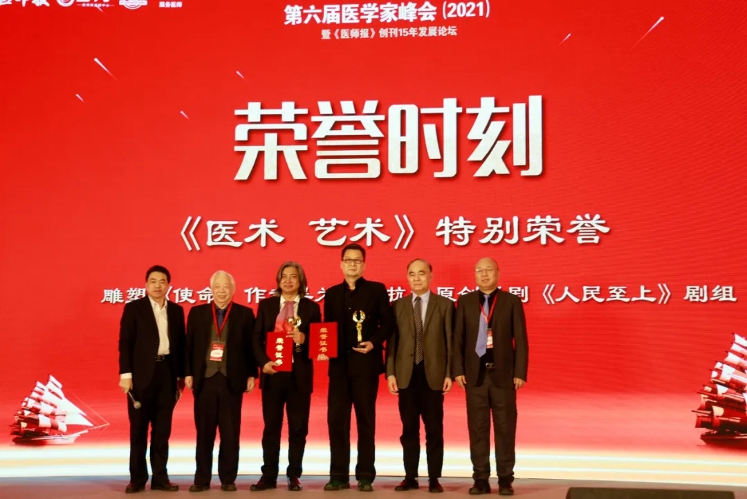 1月10日,由中国医师协会《医师报》主办的“第六届医学家峰会”在京召开。中国国家话剧院出品、演出的抗疫题材原创话剧《人民至上》荣获“《医术艺术》特别荣誉”奖项。