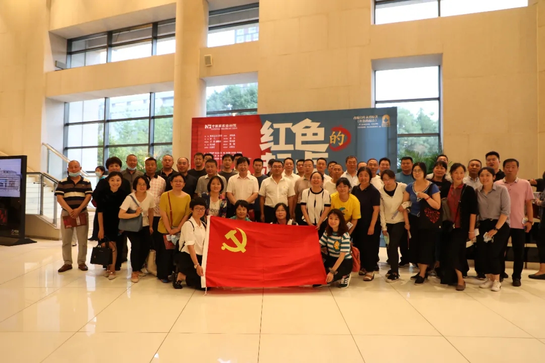 演出前观众与党旗合影
