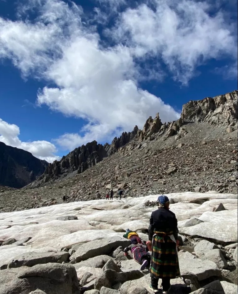 剧本大纲里写到一些香客的转山,但我没有亲身经历,所以特地去了岗仁波切雪山。我的体力还算行,只是很容易喘气,走一会就要休息。然而路上行走的藏人,无论年轻的还是年老的,走起来都没有太费劲。不久我的脚酸痛起来。坡上有沙,得缓慢地、一步一步地走。如此走了两天一夜,才走出景色优秀的大雪山(崖口海拔高达5700米)。