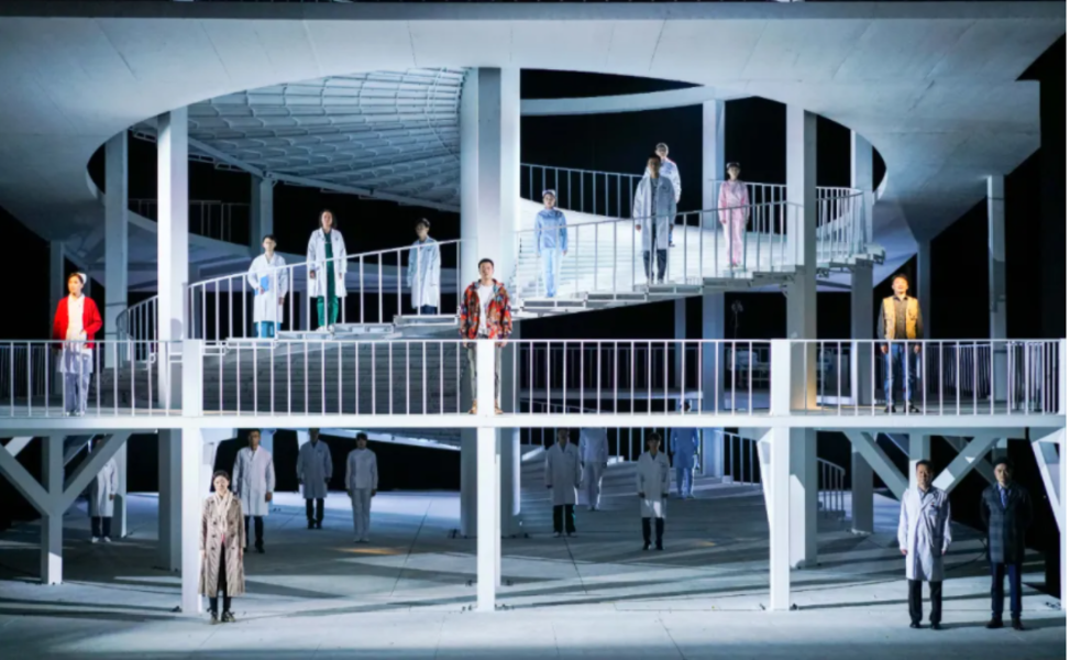 作为中国国家话剧院首部抗疫题材话剧,《人民至上》于2020年11月4日在京成功首演,并创下了五场演出全部售罄的票房喜报。编剧刘金妮筹备近一年,数易其稿,导演李伯男用两种不同的戏剧风格和审美倾向来布局,让这些英雄的名字和事迹在国家话剧院的舞台上塑像立传。舞美设计张武用纯白色旋转楼梯搭配转台,将舞台分割出不同的演区,打破时间与空间的界限,让角色进行心灵对话。灯光设计韩江运用近80只灯,通过红蓝两种灯光区分上下演区,巨型旋转楼梯在灯光的配合之下更显震撼。