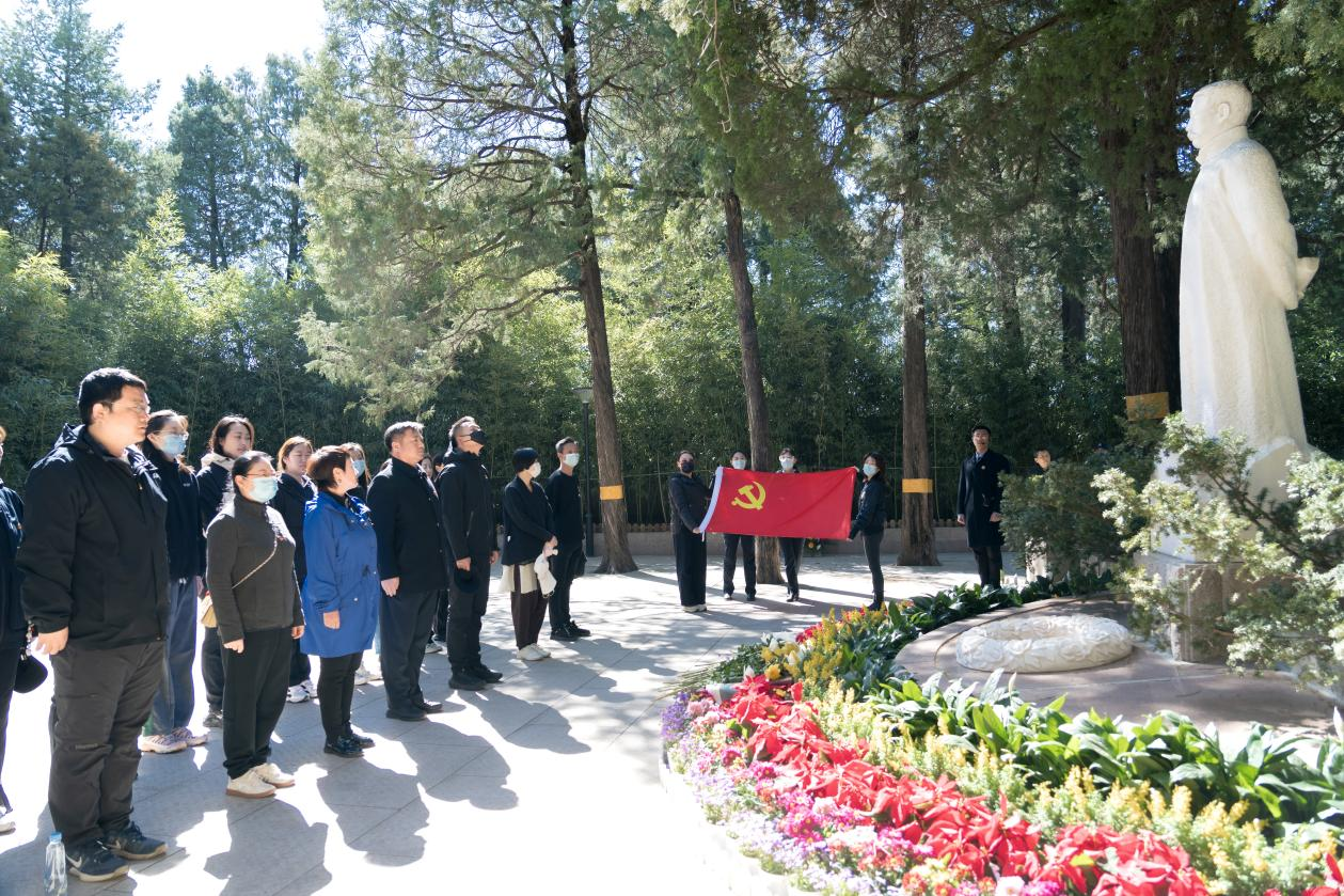 陵园之内,庄严肃穆。全体人员在李大钊烈士雕塑前默哀缅怀,敬献鲜花,深切缅怀李大钊烈士为中国革命事业所做出的巨大贡献和牺牲。面向党旗重温入党誓词,不忘初心、砥砺前行。